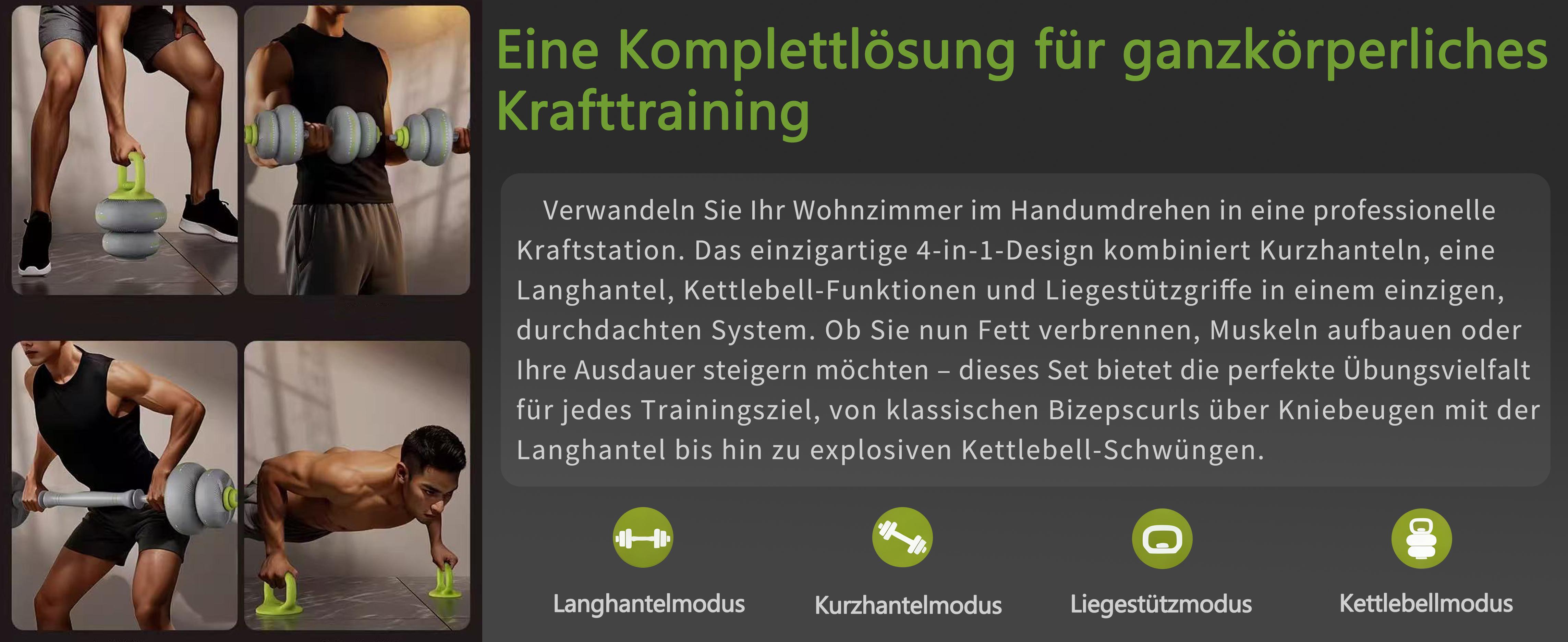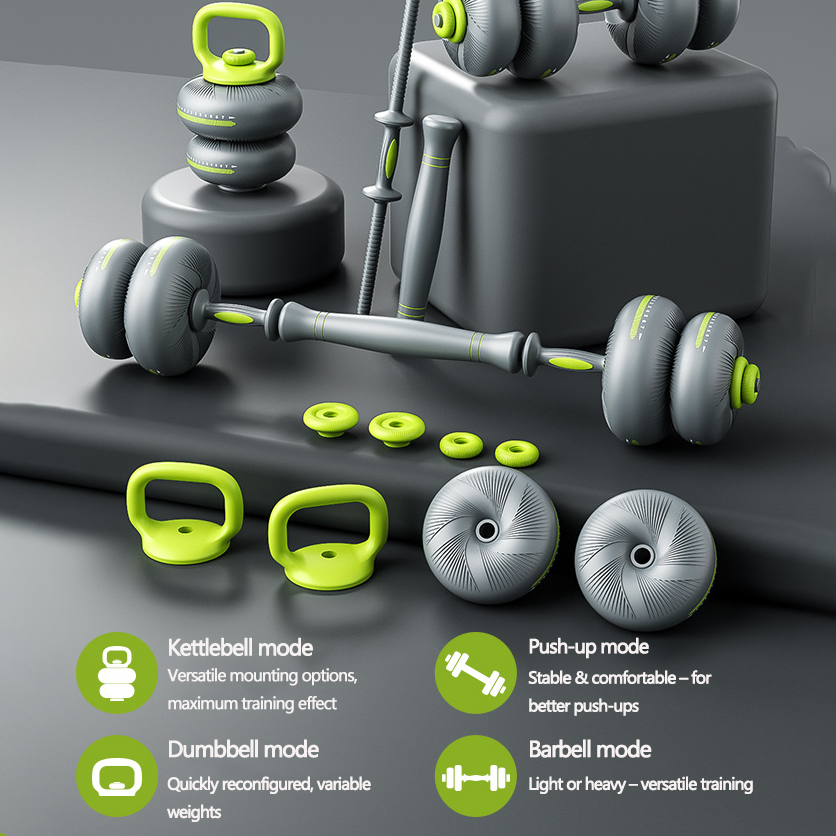 The soft, adjustable 20-kg dumbbell set is your perfect home gym.It ends scattered workout equipment and noise-sensitive floors.The 4-in-1 design combines dumbbell, barbell, kettlebell functions, and push-up handles.Ideal for fat burning, muscle gain and improved endurance.